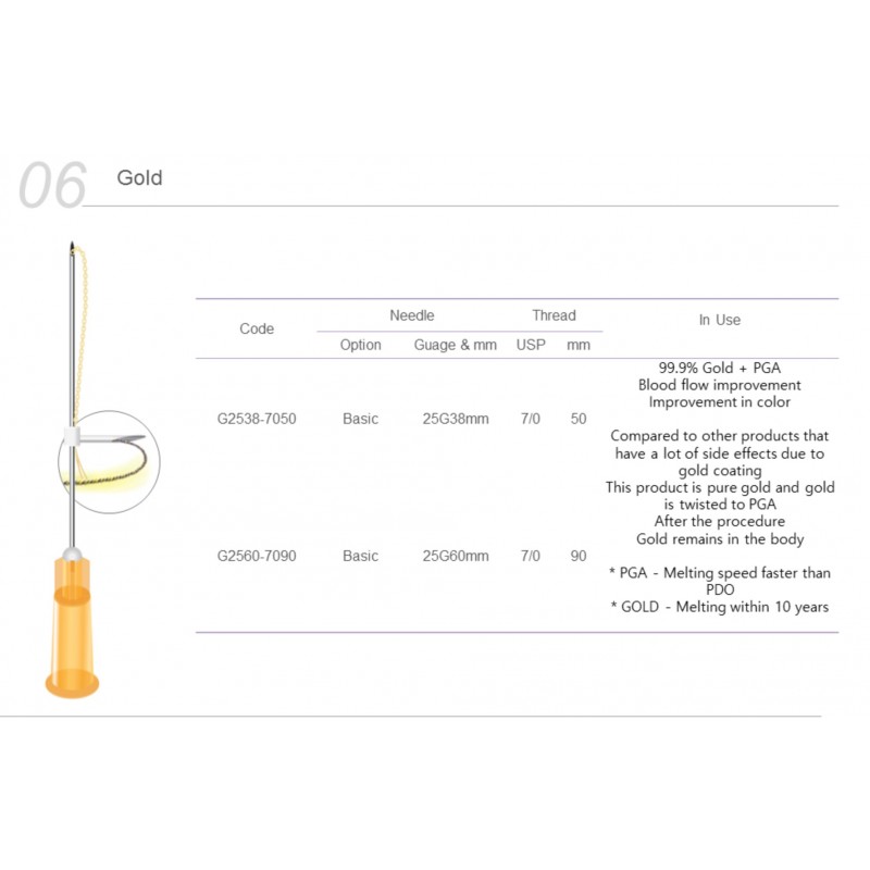 A safe PGA thread which has pure gold twisted with unique technology and no side effect after the procedure compares the typical gold coated products.