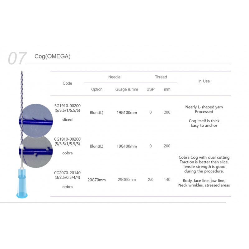 Essorb Cobra PDO cog thread is the use of Cannula PDO barbed thread, available with uni- and bi-directional cogs or barbs, is a semi-invasive method of lifting sagging skin of the face.